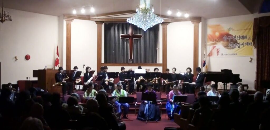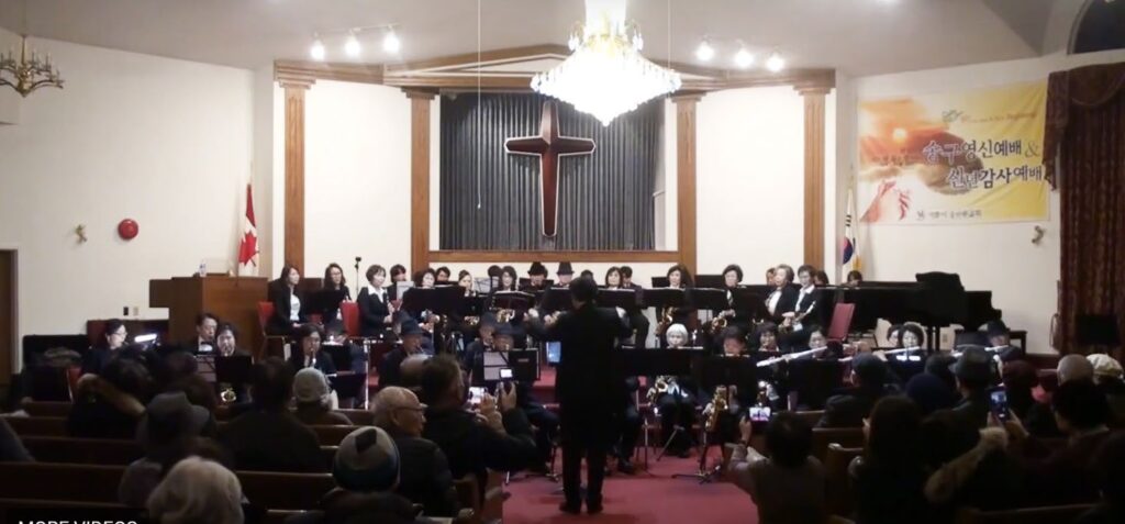제 5 회 K.C 시니어 윈드 오케스트라 정기 연주회 이민 세대를 잇는 한국의 선율2025 년 7 월 5 일 5:00 pm Trinity Presbyterian church 2737 Bayview ave, Toronto악장:유정자외 50 명 출연 조성준노인복지부 장관외 400 명 참석협연:소프라노: 김한나, 민요 황원자우리민요: 쾌지나 칭칭나네 심포닉 버젼/밀양아리랑신세계교향곡 발췌본 / 가곡: 보리밭, 선구자 등 단원 중 이기대님 ,최호영님,이용기님… 단원 중…